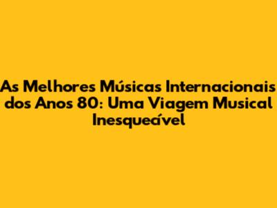 Os anos 80 foram uma década de música vibrante, inovação e emoção. As melhores músicas internacionais dos anos 80 continuam sendo sinônimo de qualidade e nostalgia, e sua influência pode ser sentida até hoje. Ao relembrar esses sucessos, podemos reviver momentos especiais, celebrar a criatividade e a originalidade dos artistas e nos conectar com a energia contagiante dessa época inesquecível. Então, prepare-se para ouvir suas músicas favoritas, dançar, cantar e celebrar a magia dos anos 80. A música nos transporta no tempo, e essa viagem é sempre uma experiência prazerosa e memorável!