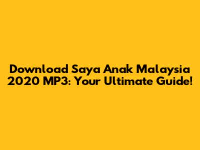 Download 'Saya Anak Malaysia 2020' MP3: Free & Easy!
