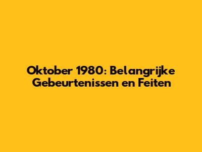 Oktober 1980: Belangrijke Gebeurtenissen En Feiten