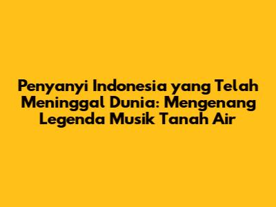 Penyanyi Indonesia yang telah meninggal dunia meninggalkan jejak tak terhapuskan dalam sejarah musik Indonesia. Kita seringkali mengenang mereka, bukan hanya sebagai penghibur, tetapi juga sebagai seniman yang karyanya terus menginspirasi dan menghibur generasi. Artikel ini akan mengajak kita untuk mengenang beberapa nama besar dalam industri musik Indonesia yang telah berpulang, serta melihat kembali kontribusi dan warisan musik yang mereka tinggalkan. Mari kita simak bersama kisah-kisah mereka, dari awal karier hingga momen-momen puncak yang tak terlupakan, serta bagaimana musik mereka tetap hidup dan terus dinikmati hingga kini.