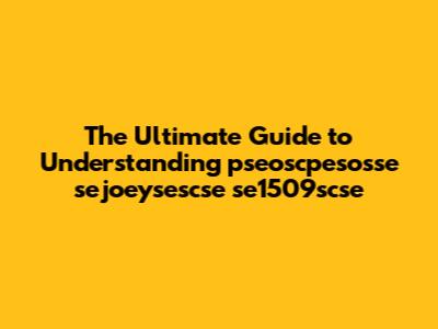 The Ultimate Guide to Understanding pseoscpesosse sejoeysescse se1509scse