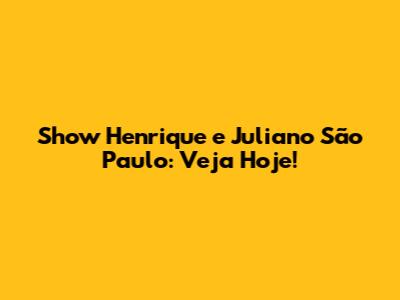 Show Henrique E Juliano São Paulo: Veja Hoje!