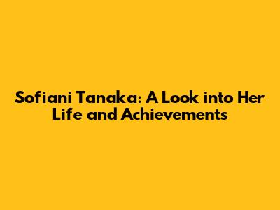 Sofiani Tanaka: A Look Into Her Life And Achievements