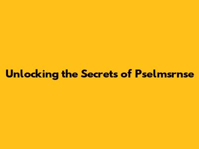 Conclusion: Embracing the Mystery of Pselmsrnse