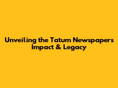 Unveiling The Tatum Newspaper's Impact & Legacy